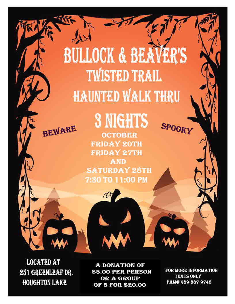 HOUGHTON LAKE THREE DAYS ONLY OCT 20 - 27 - 28 |